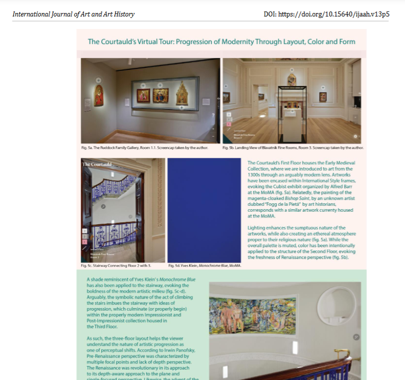 “Screenshot” del artículo: “From Early Medieval to Modern: Understanding How the Courtauld’s Viewing Pathways Support Impressionism as a Modern Renaissance Through a Virtual Tour,” publicado en el International Journal of Art and Art History.
